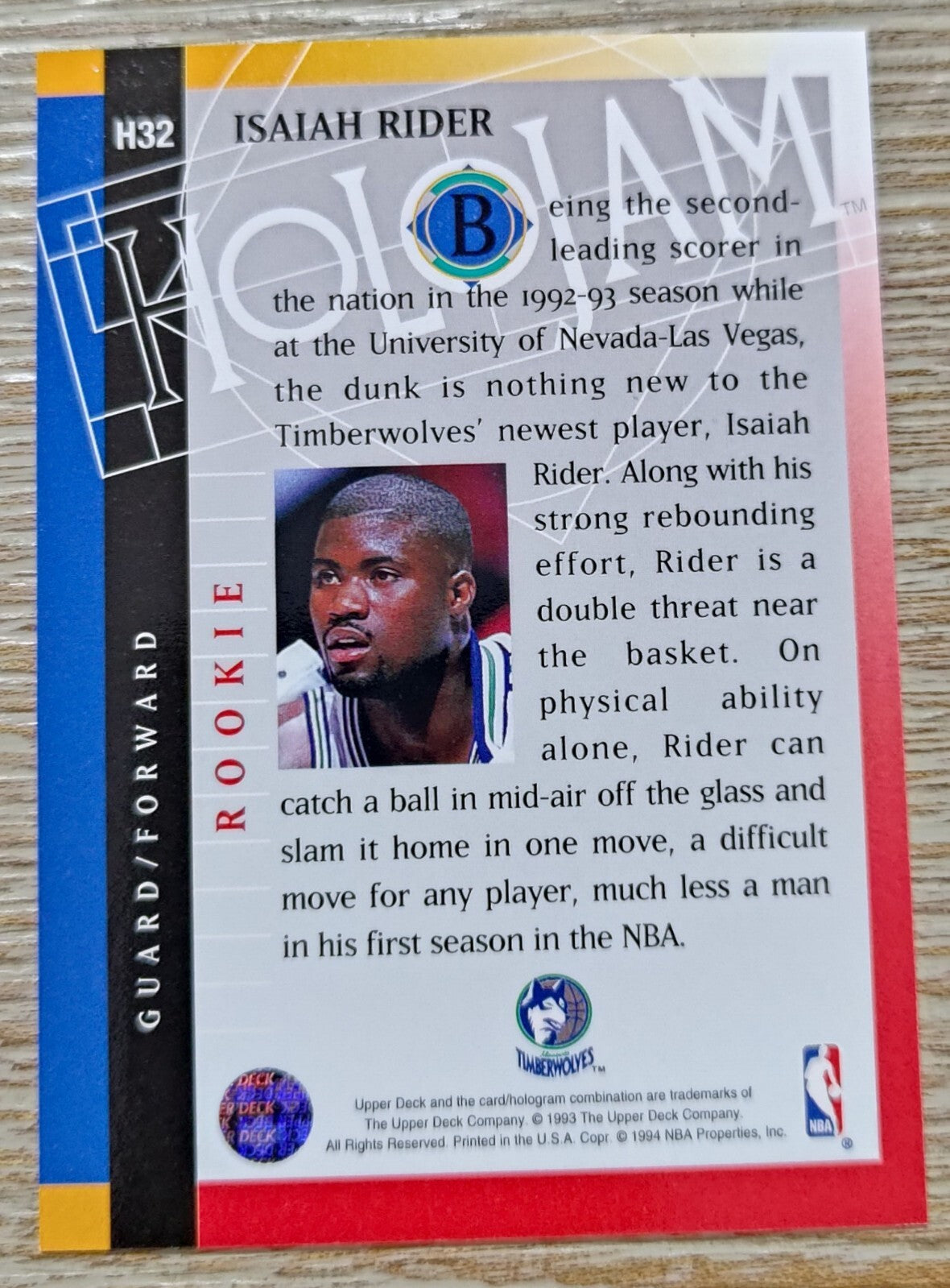 NBA - Isaiah Rider Holojam H32 1993 Upper Deck NM/M Card. Card is in NM/M condition. Card will be sent...