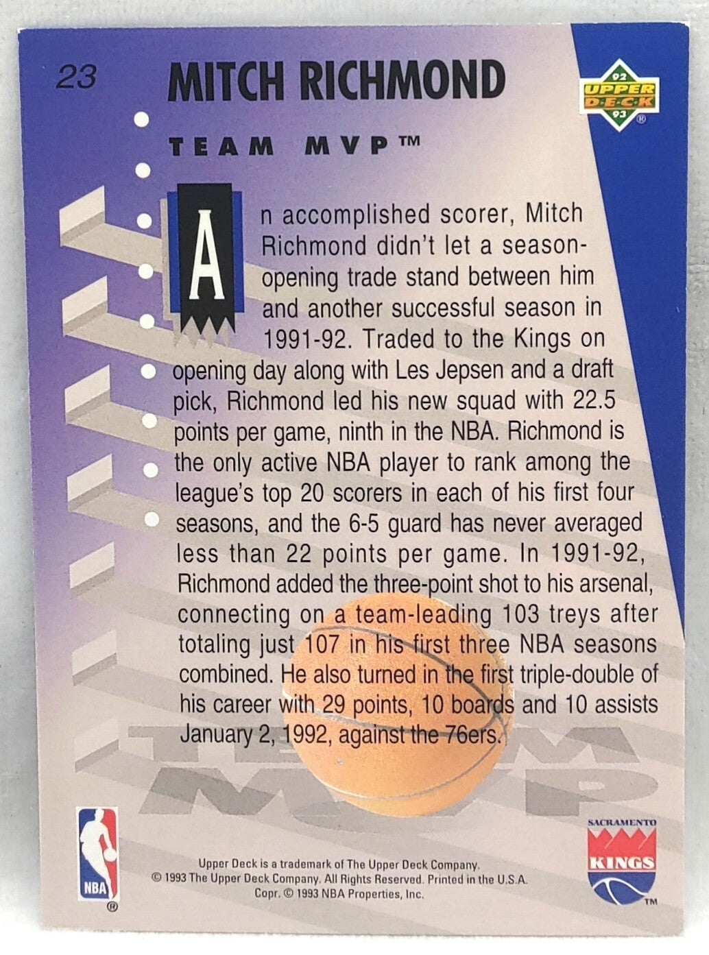 NBA - Mitch Richmond 1992 MVP Holograms #23 Upper Deck NM/M Card. Card is in NM/M condition. Card will be...