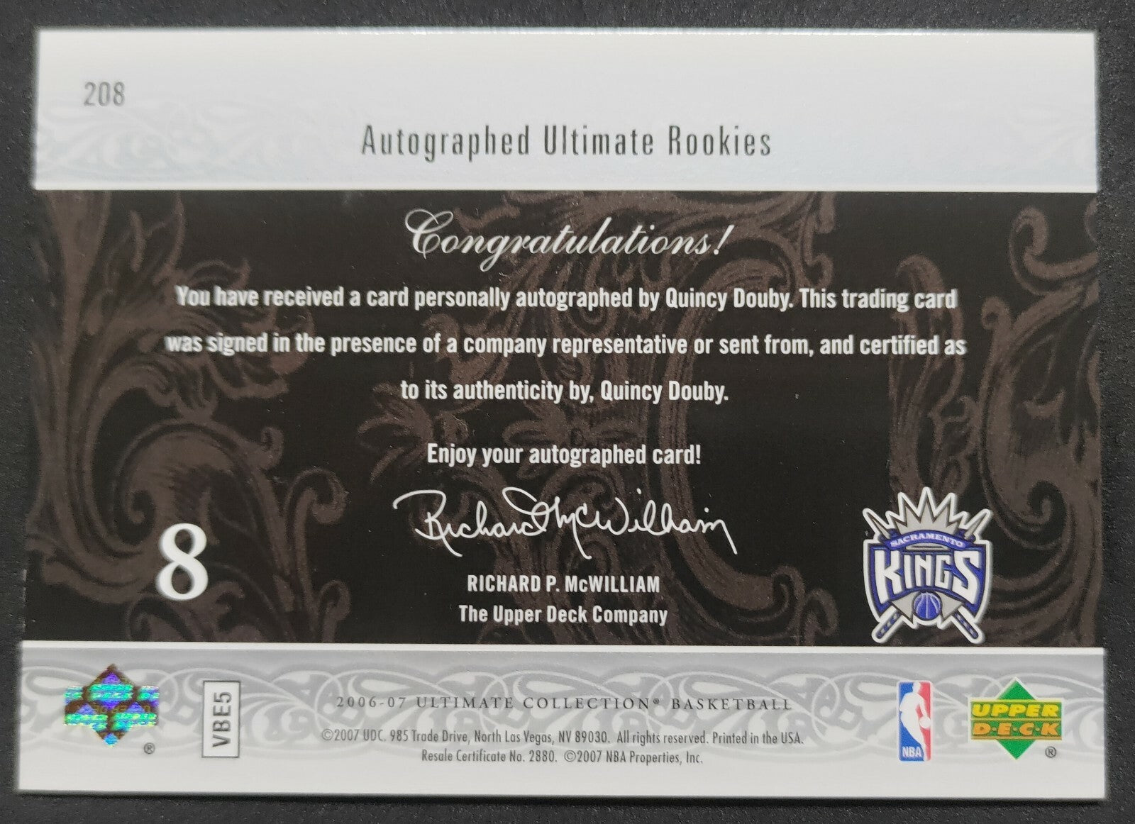 NBA - Quincy Douby 2006 - 07 Ultimate Collection Autographed Rookies #224/350 NM Card Card will be sent sleeved and...