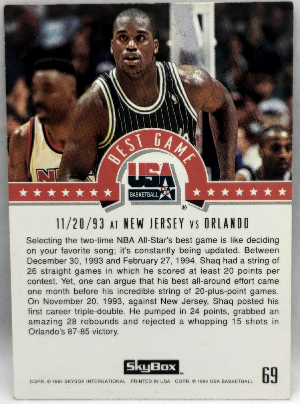 NBA - Shaquille O'Neal 1994 Skybox USA #69 Card. Card is in Exc condition, however, please use photos to assess...