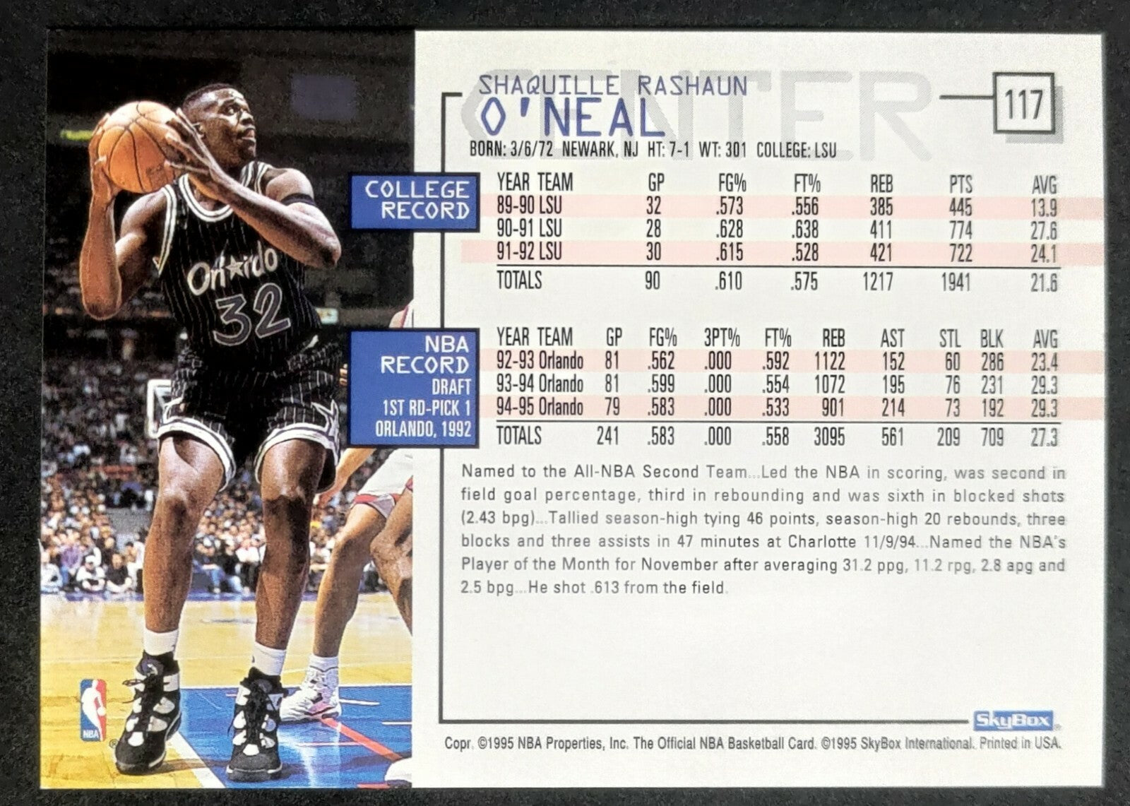 NBA - Shaquille O'Neal 1995-96 Hoops #117 NM/M Card. Card is in NM/M condition, however, please use photos to assess...