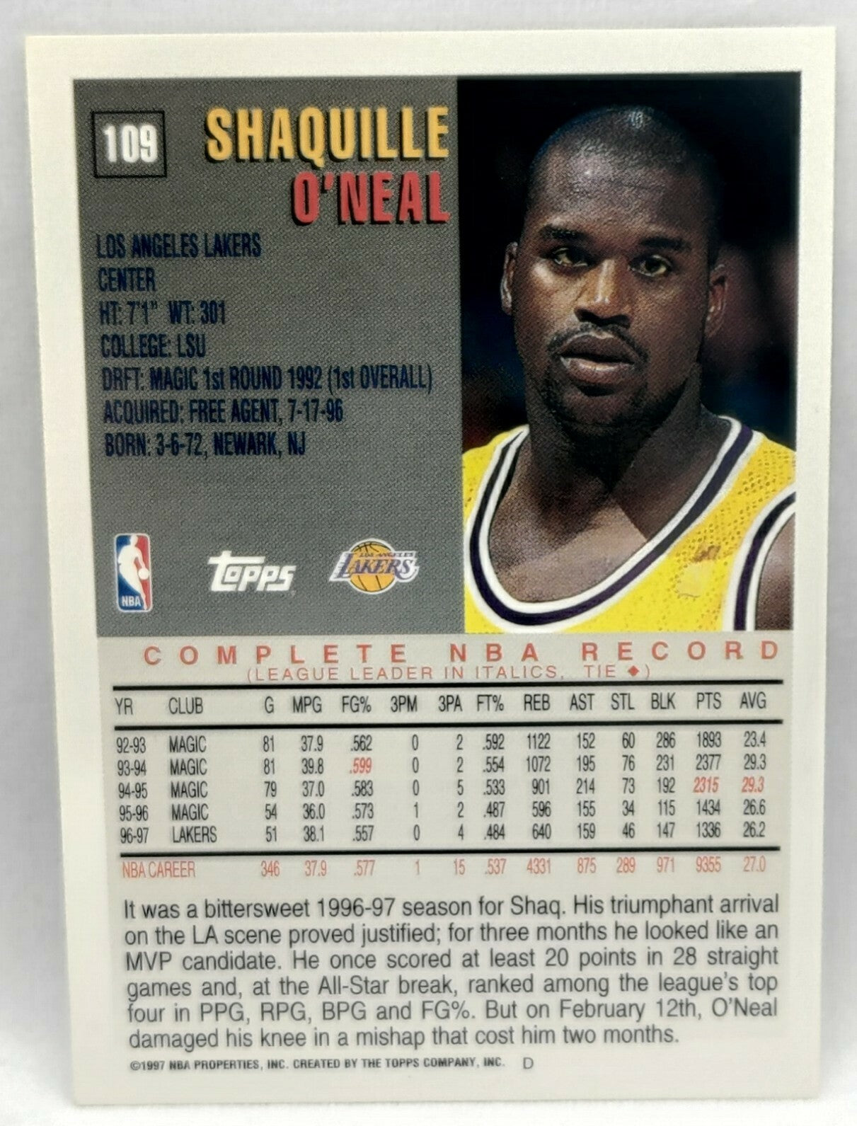 NBA - Shaquille O'Neal 1997-98 Topps #109 NM/M Card. Card is in NM/M condition, however, please use photos to assess...