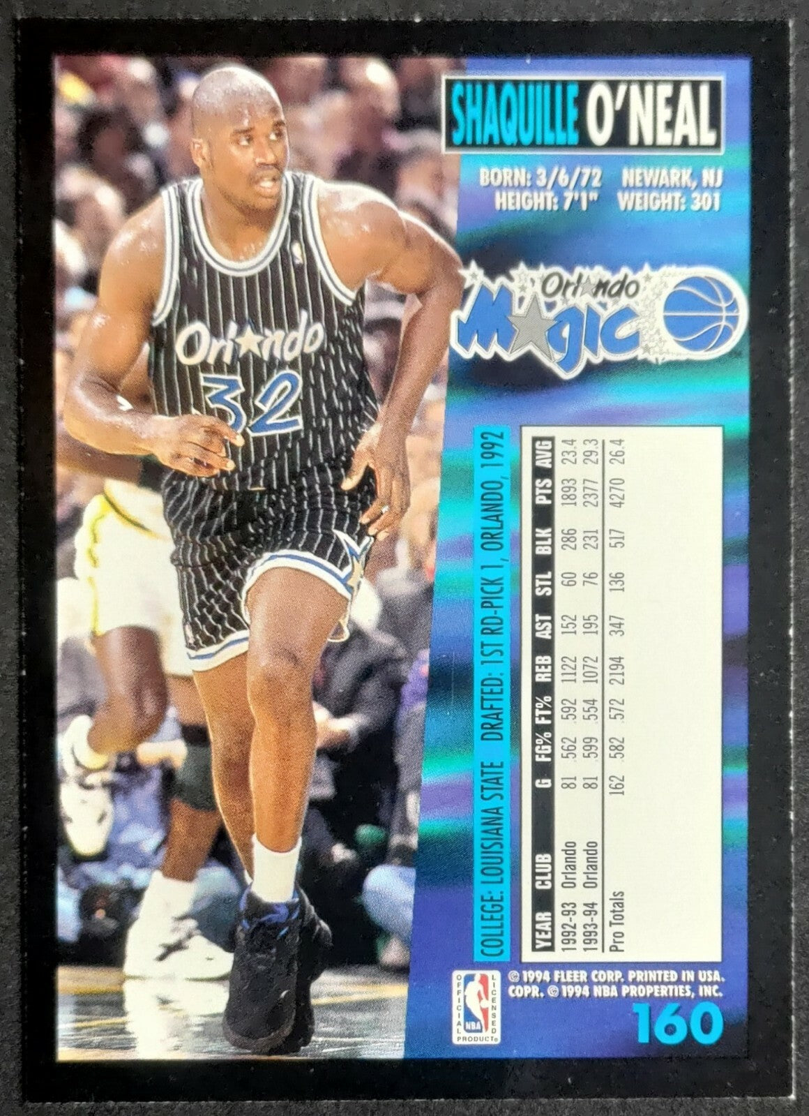 NBA - Shaquille O'Neal Fleer 1994-95 #160 NM/M Card. Card is in NM/M condition. Card will be sent tracked, sleeved,...
