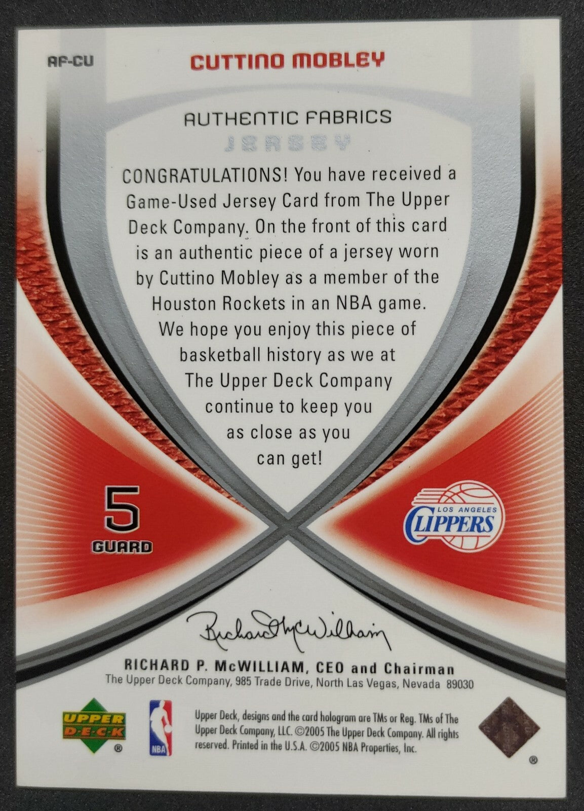 NBA - 2005 SP Game Used Authentic Fabrics Cuttino Mobley Patch Card. Card is in NM condition, however, please use...