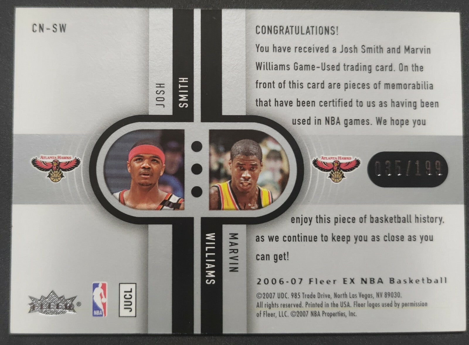 NBA - 2006-07 Fleer Ex ConnEXions Josh Smith/Marvin Williams Dual Patch 035/199. Card is in NM condition, however, please use...