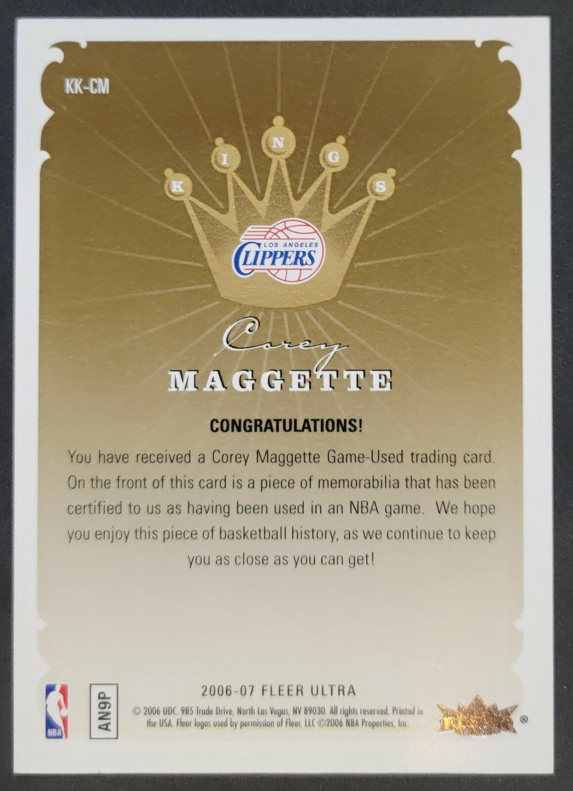 NBA - 2006-07 Fleer Ultra Kings Of The Court - Corey Maggette Patch Card. Card is in NM condition, however,...