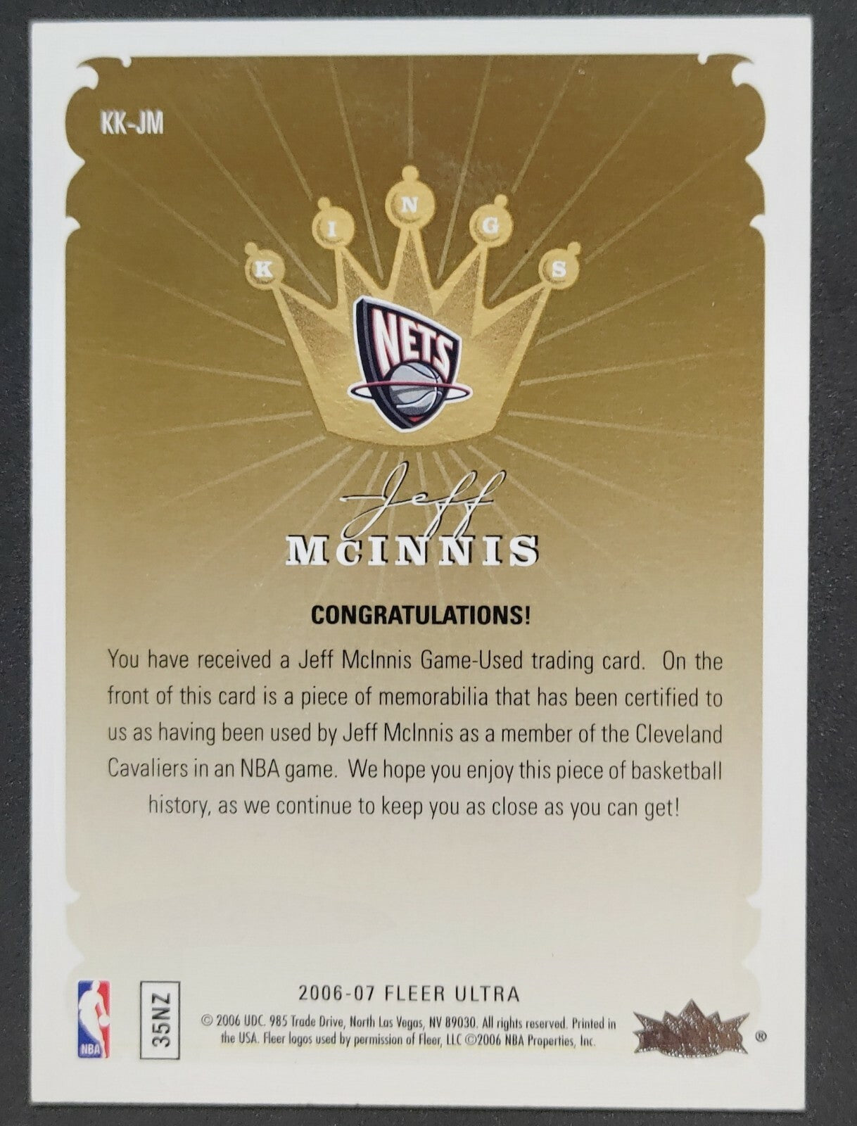 NBA - 2006-07 Fleer Ultra Kings Of The Court - Jeff McInnis Patch Card. Card is in NM condition, however,...