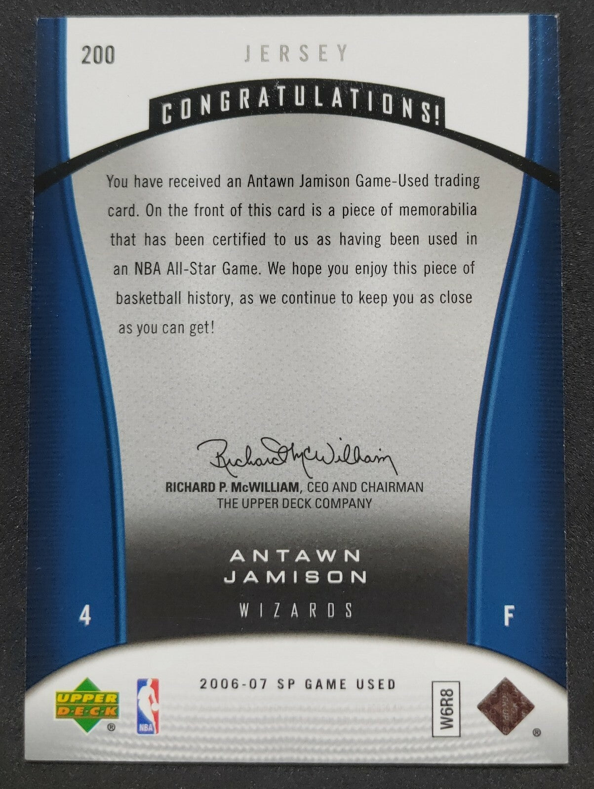 NBA - 2006-07 SP Game Used Antawn Jamison Patch Card. Card is in NM condition, however, please use photos to...