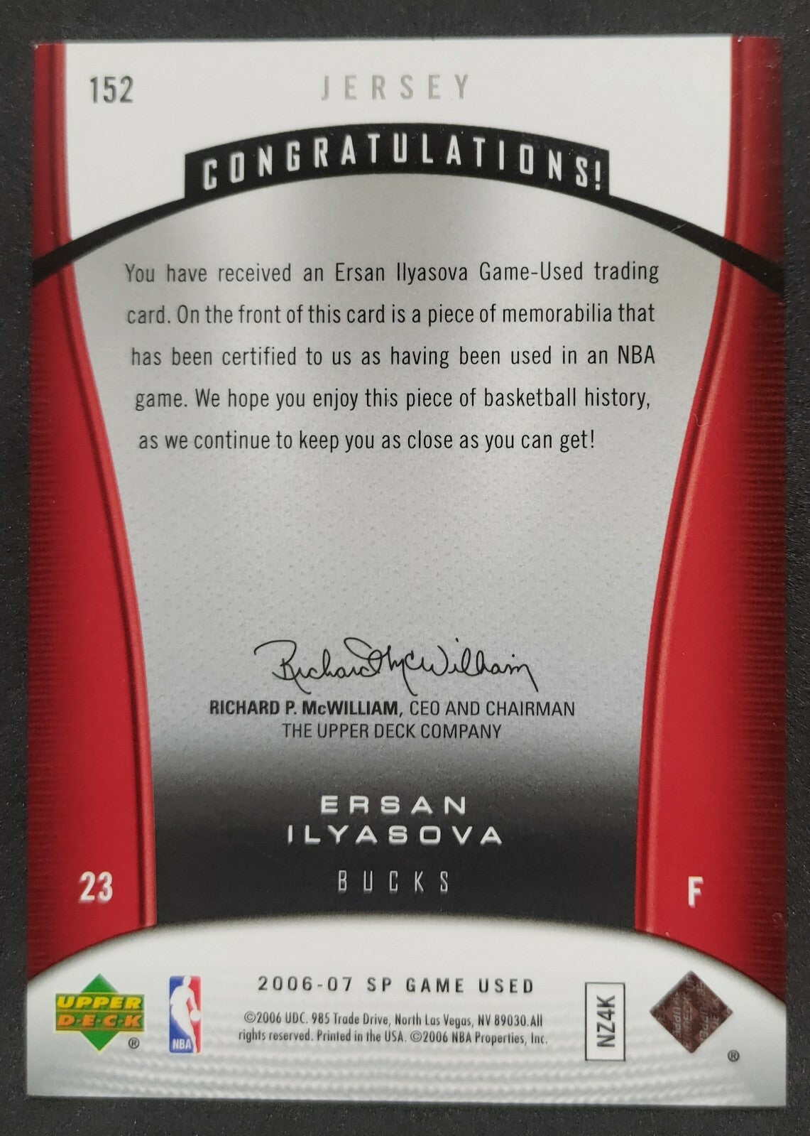 NBA - 2006-07 SP Game Used Ersan Ilyasova Patch Card. Card is in NM condition, however, please use photos to...