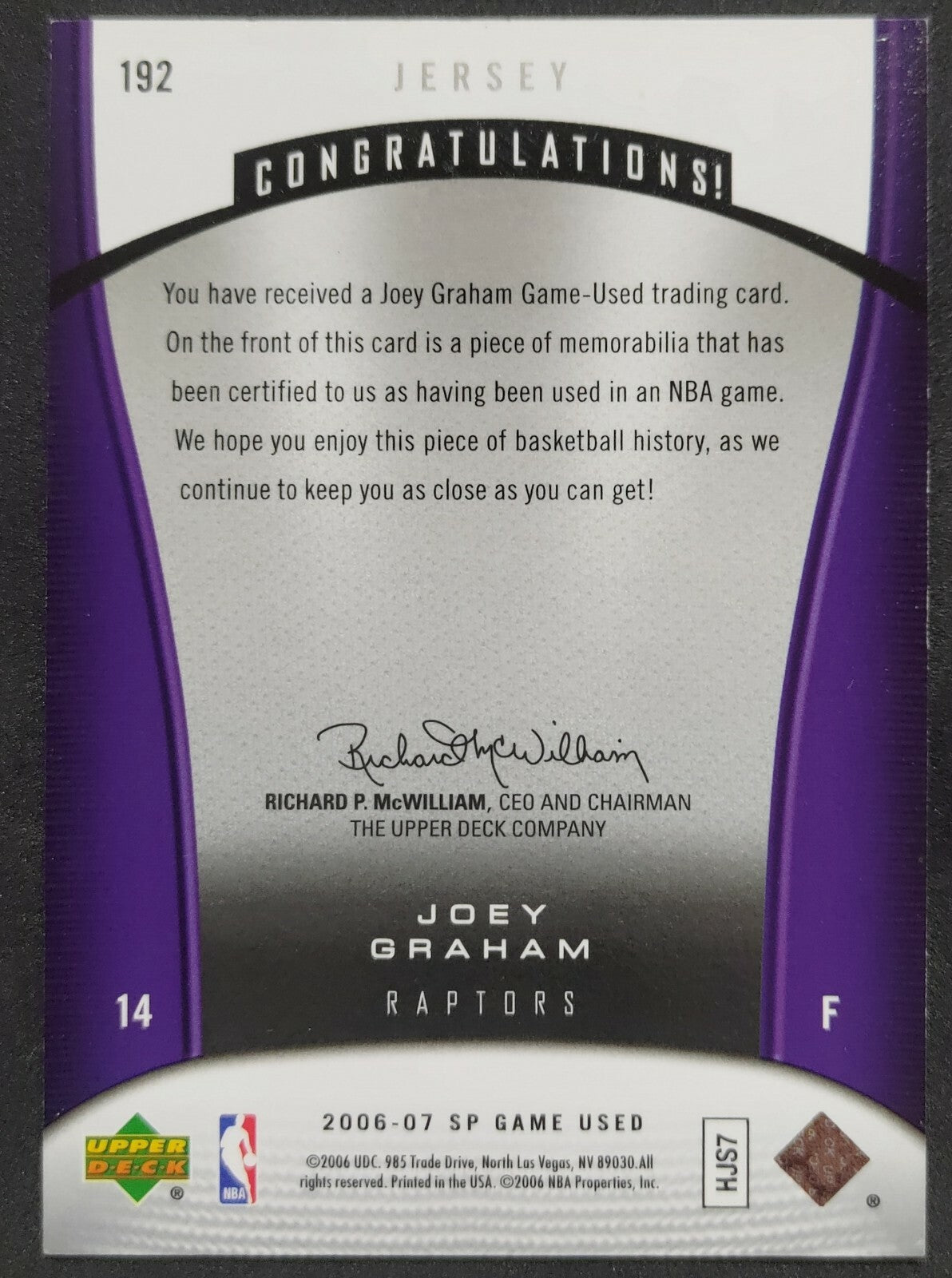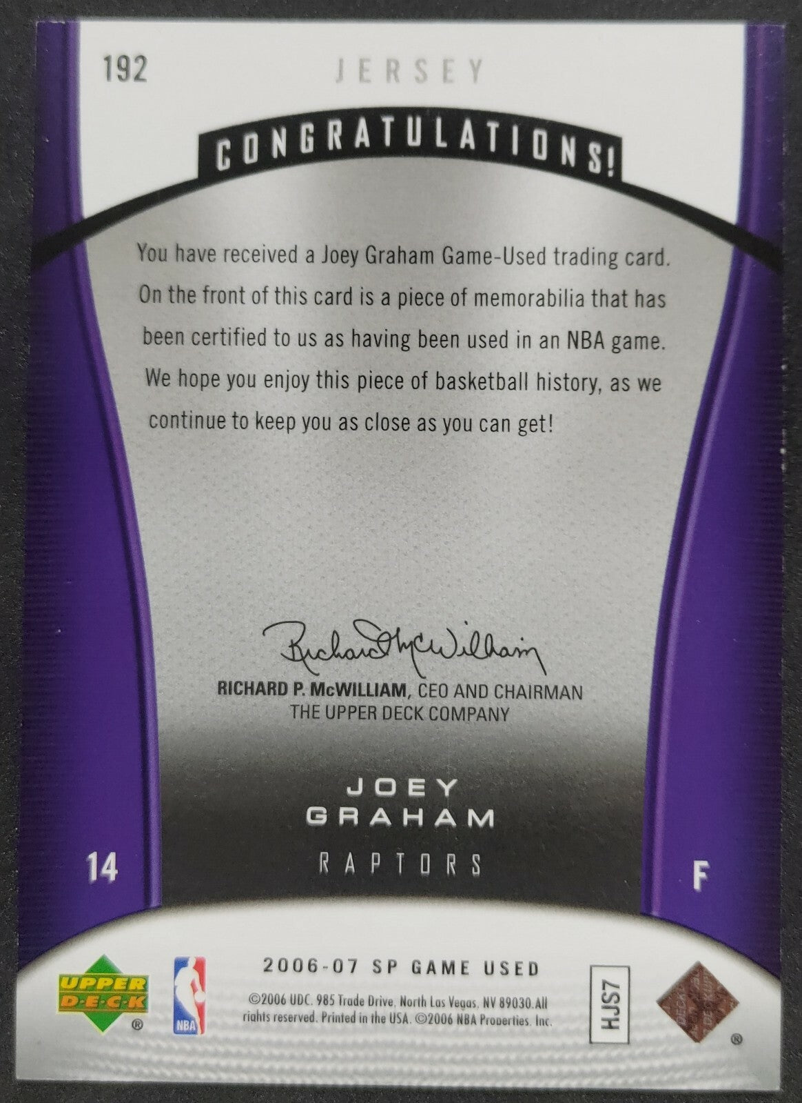 NBA - 2006-07 SP Game Used Joey Graham Patch Card. Card is in NM condition, however, please use photos to...