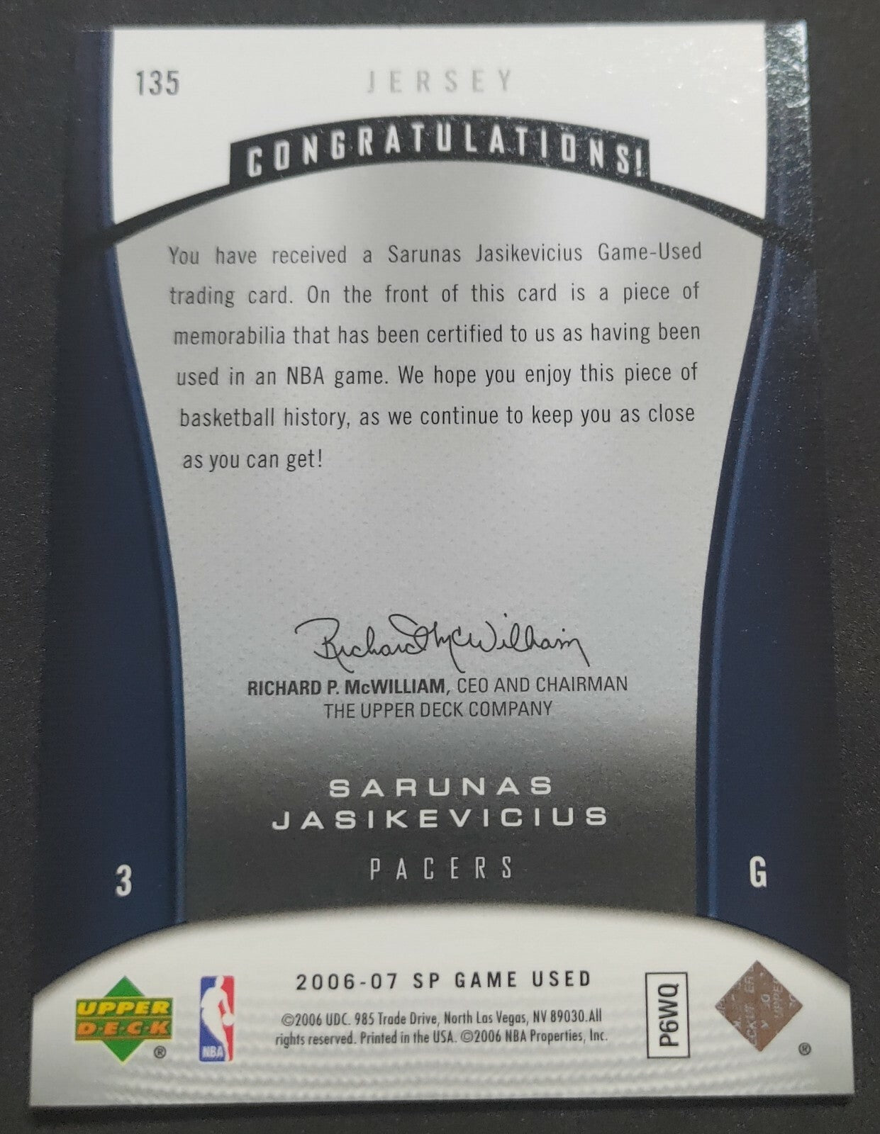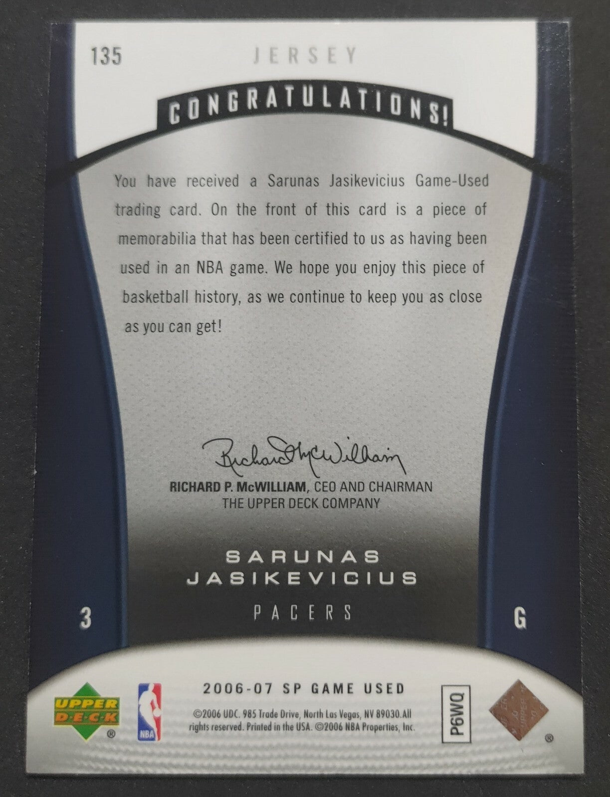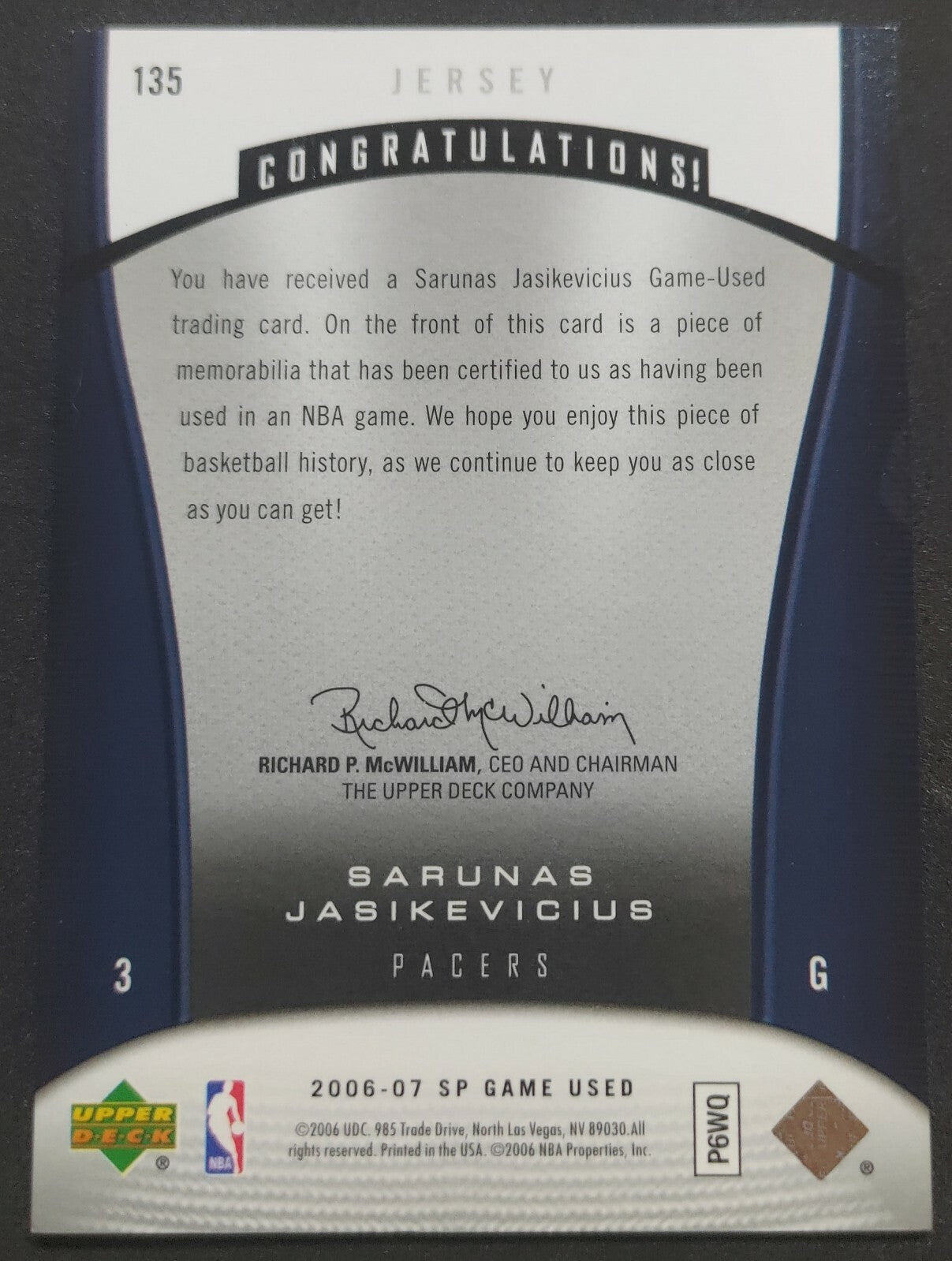NBA - 2006-07 SP Game Used Sarunas Jasikevicius Patch Card. Card is in NM condition, however, please use photos to...