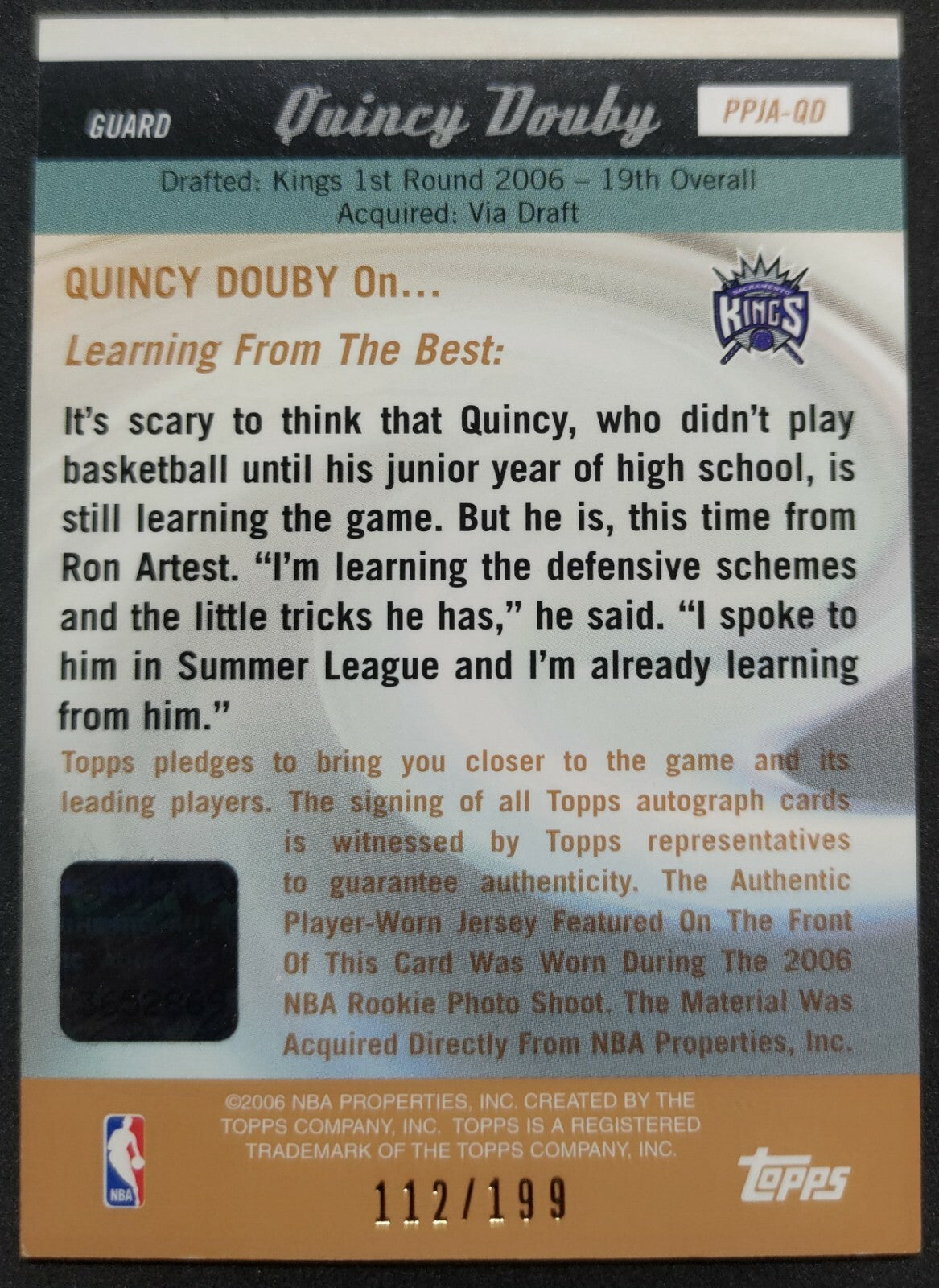 NBA - 2006 Topps Picture Perfect Quincy Douby Patch & Auto Card 112/199. Card is in NM condition, however, please...