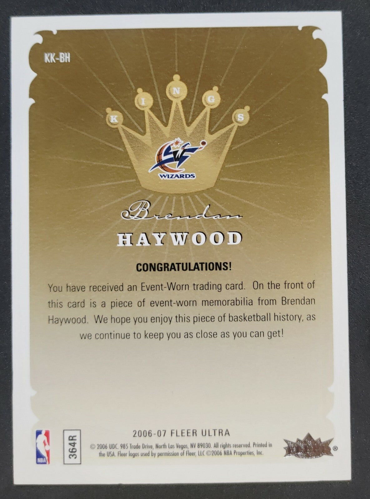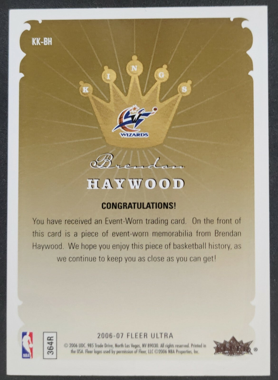 NBA - 2006-07 Fleer Ultra Kings Of The Court - Brendan Haywood Patch Card. Card is in NM condition, however,...