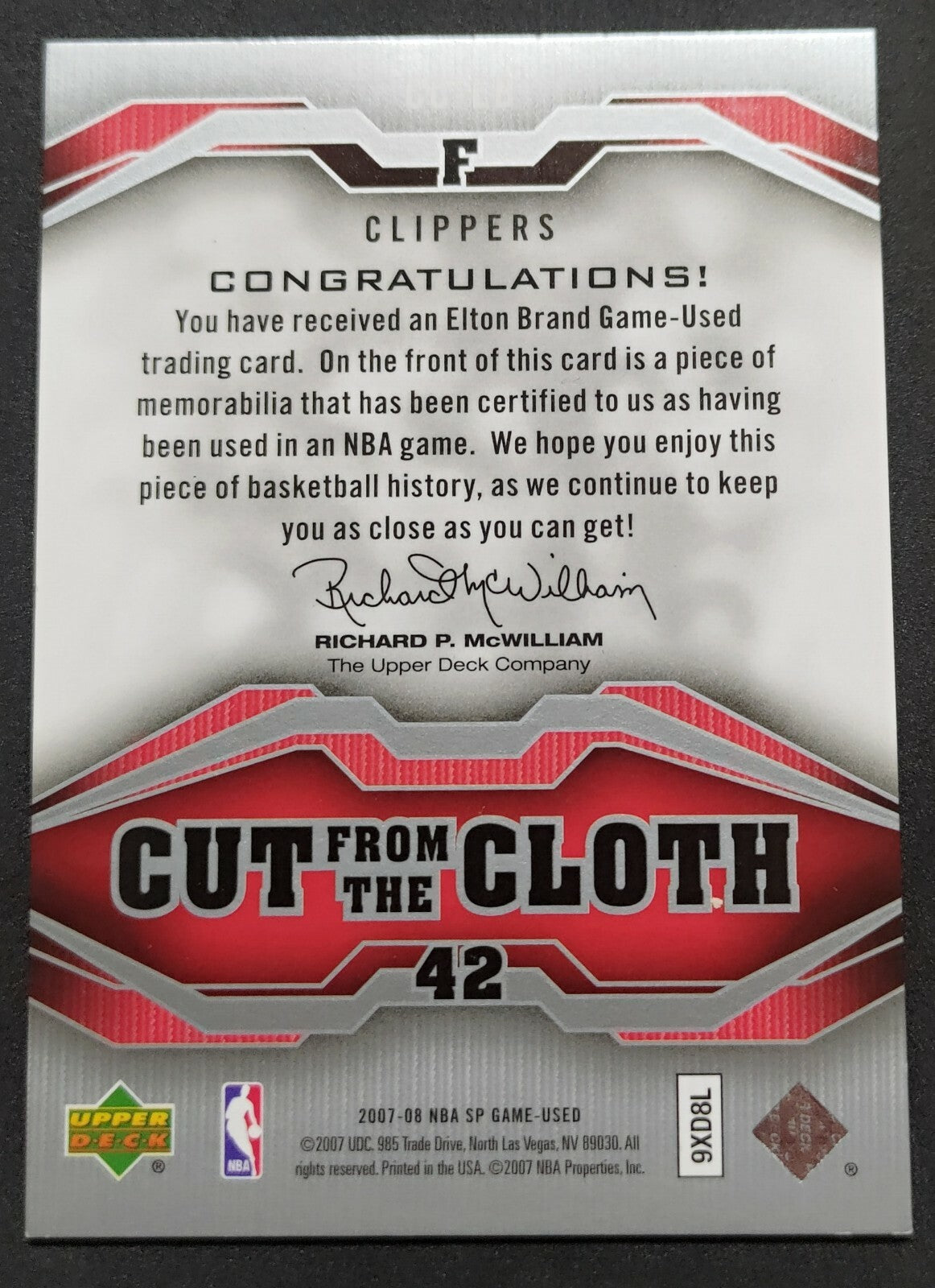 NBA - 2007-08 SP Cut From Cloth Elton Brand Patch Card. Card is in NM condition, however, please use photos...
