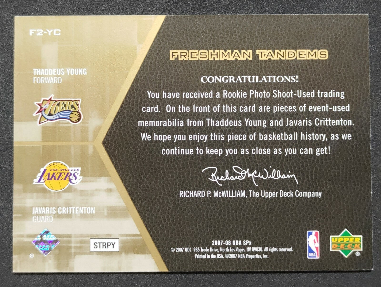 NBA - 2007-08 SPx Freshman Tandems Young/Crittenton Dual Patch Card. Card is in NM condition, however, please use photos to...