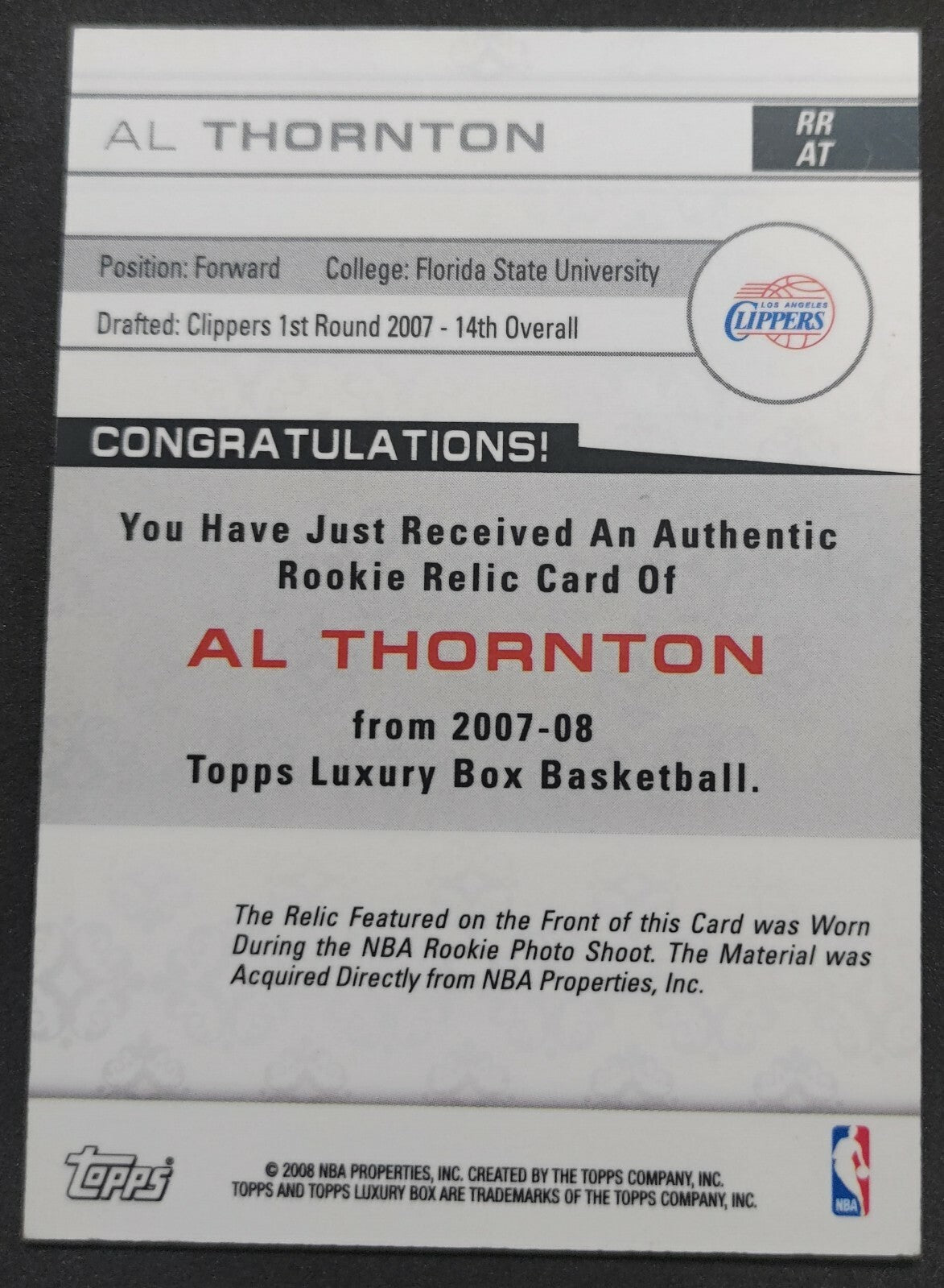NBA - 2007-08 Topps Luxury Box Rookie Al Thornton 342/499 Patch Card. Card is in NM condition, however, please use...