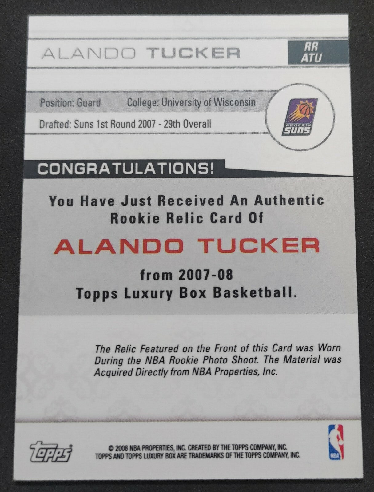 NBA - 2007-08 Topps Luxury Box Rookie Alando Tucker 289/499 Patch Card. Card is in NM condition, however, please use...