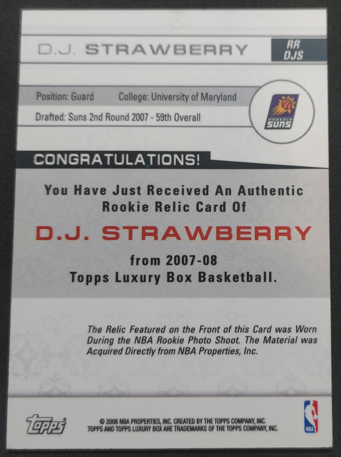 NBA - 2007-08 Topps Luxury Box Rookie D.J. Strawberry 467/499 Patch Card. Card is in NM condition, however, please use...