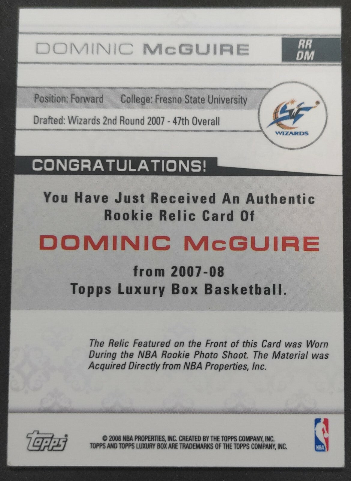 NBA - 2007-08 Topps Luxury Box Rookie Dominic McGuire 022/499 Patch Card. Card is in NM condition, however, please use...