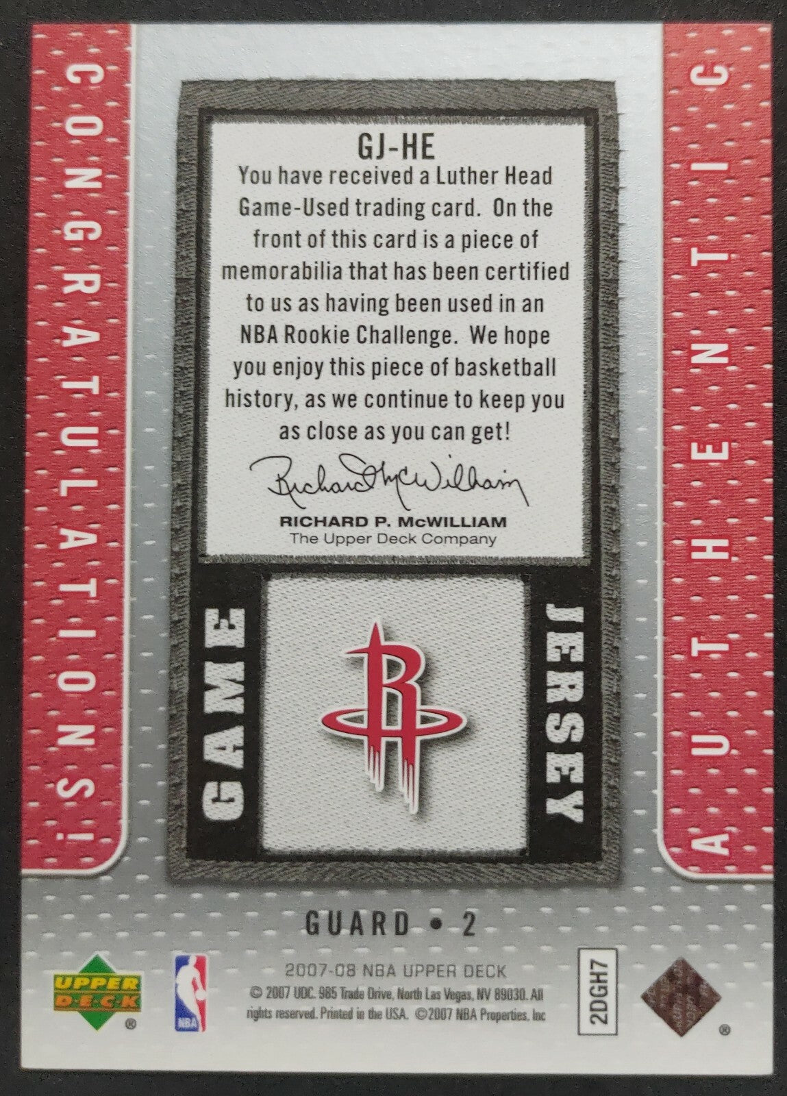 NBA - 2007-08 Upper Deck Game Jersey Luther Head Patch Card. Card is in NM condition, however, please use photos...