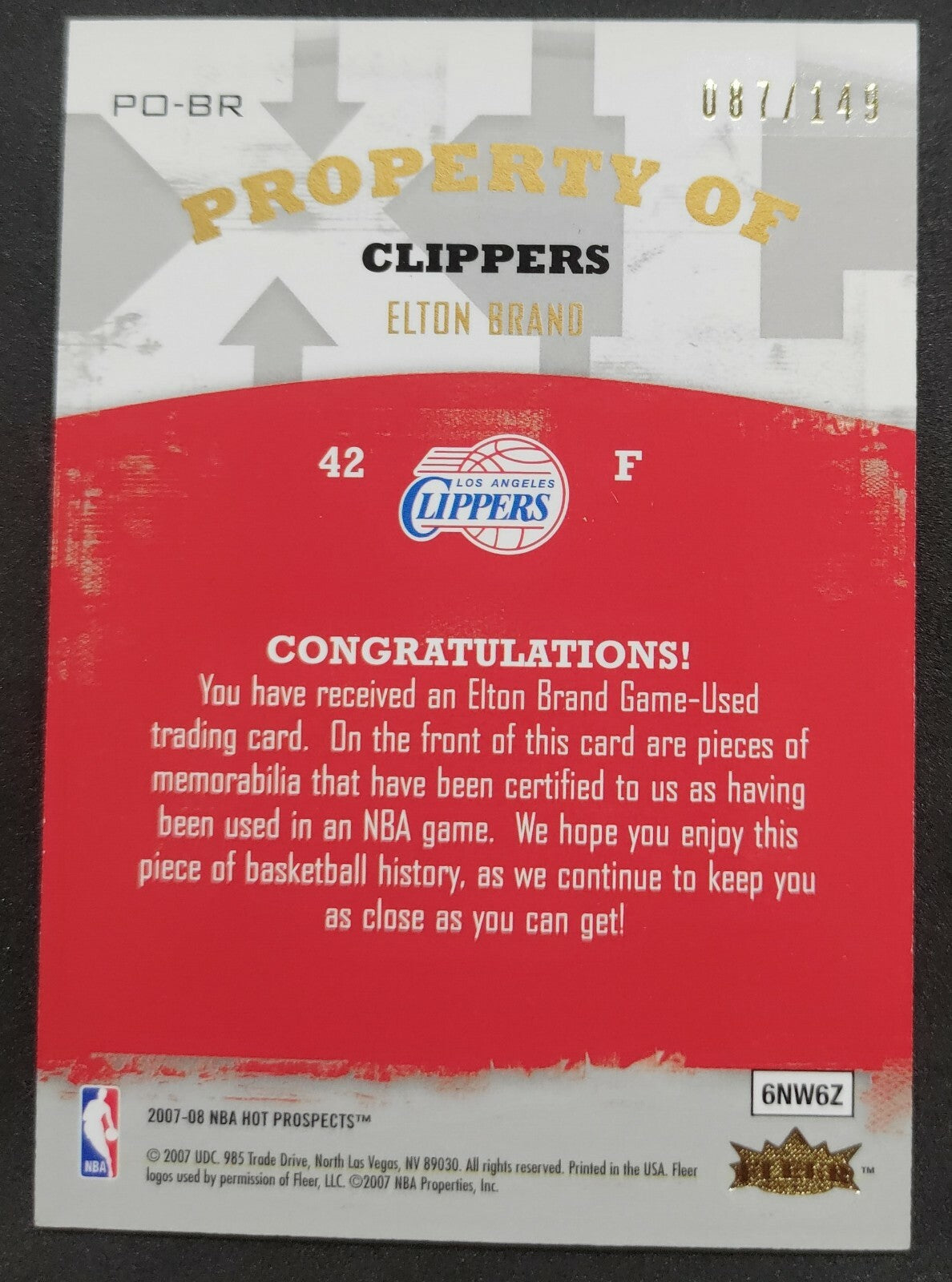NBA - 2007-08 Fleer Hot Prospects - Elton Brand 087/149 Patch Card. Card is in NM condition, however, please use...