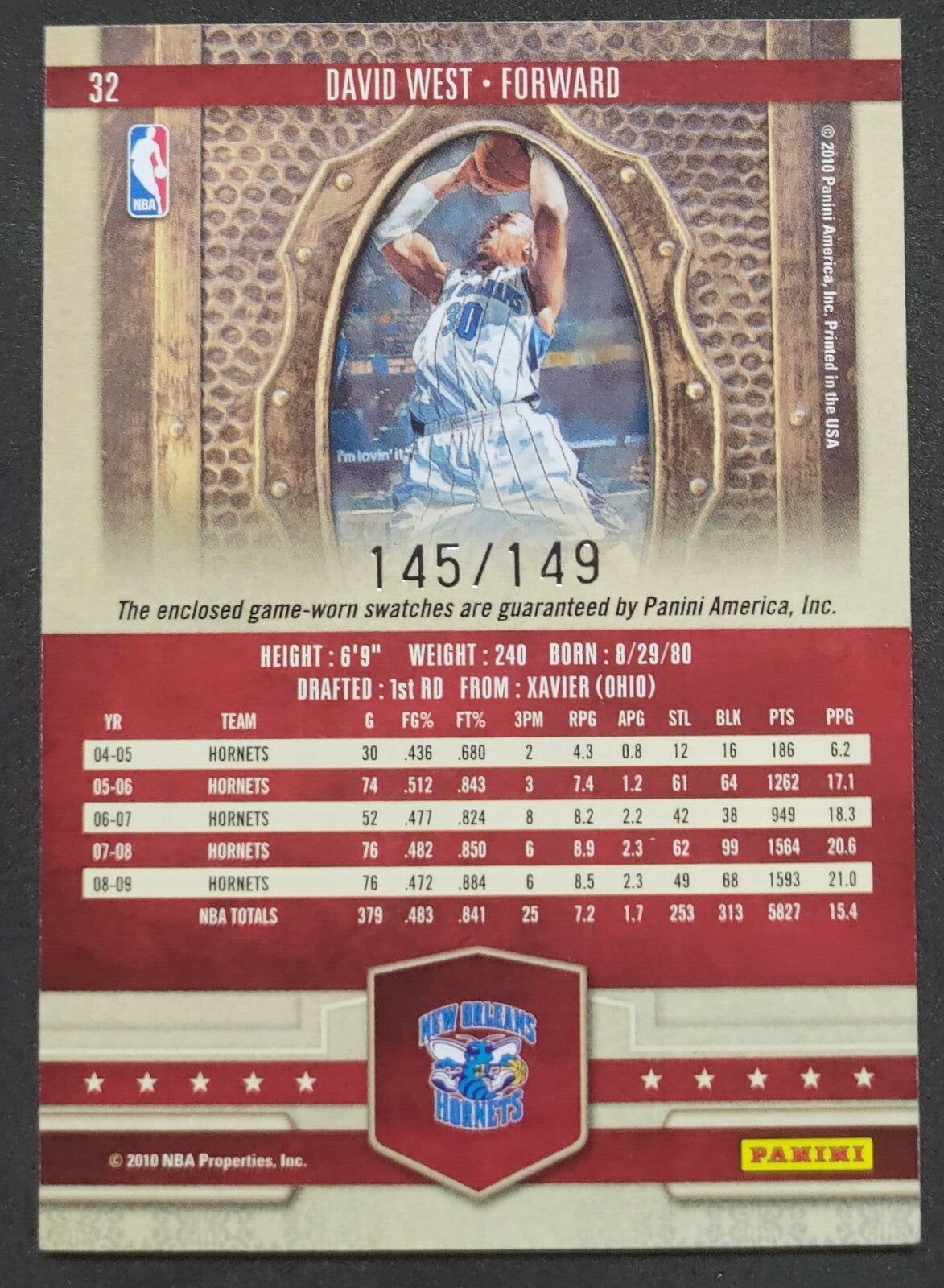 NBA - 2010 Panini Court Kings David West 145/149 Dual Patch Card. Card is in NM condition, however, please use...