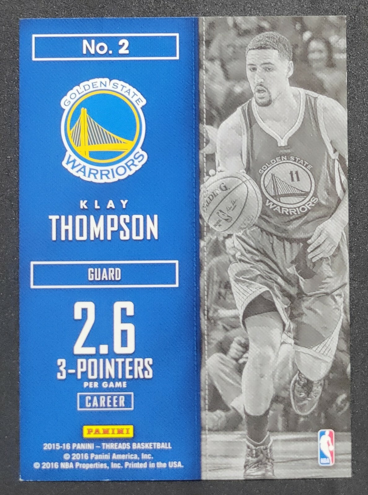 NBA - 2015-16 Panini Klay Thompson 22/99 Card #2. Card is in NM condition, however, please use photos to assess...