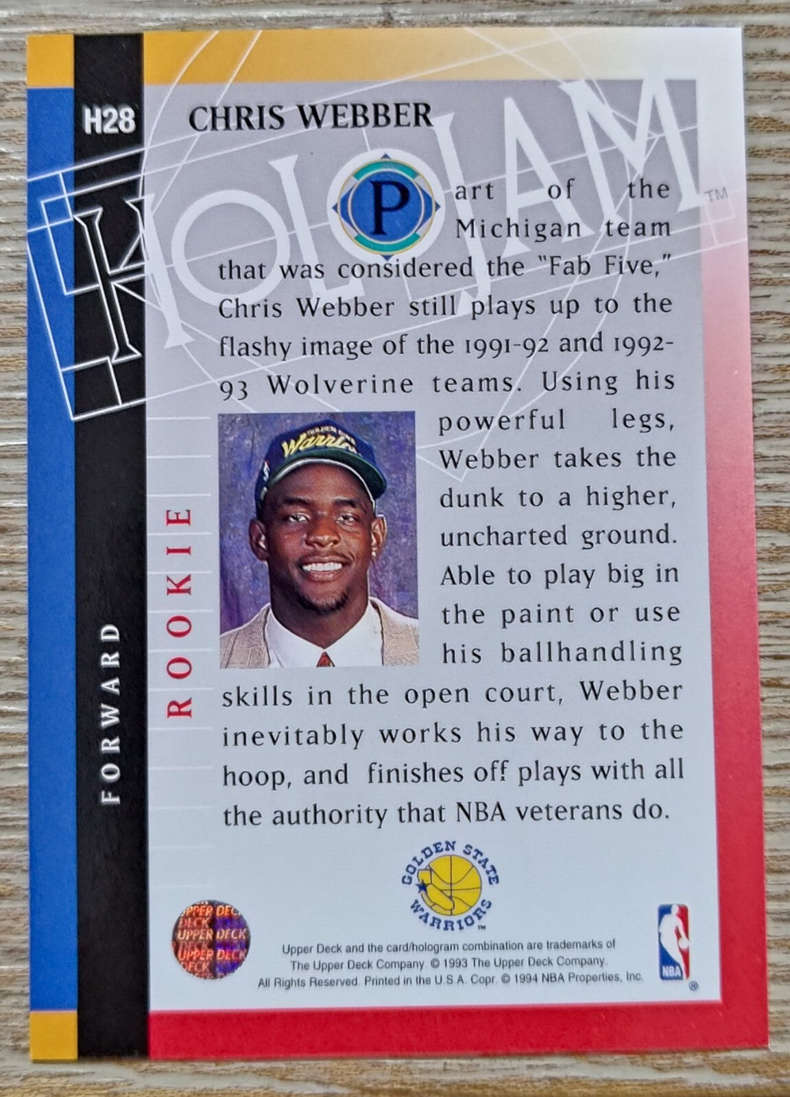 NBA - Chris Webber Holojam H28 1993 Upper Deck NM/M Card. Card is in NM/M condition. Card will be sent...