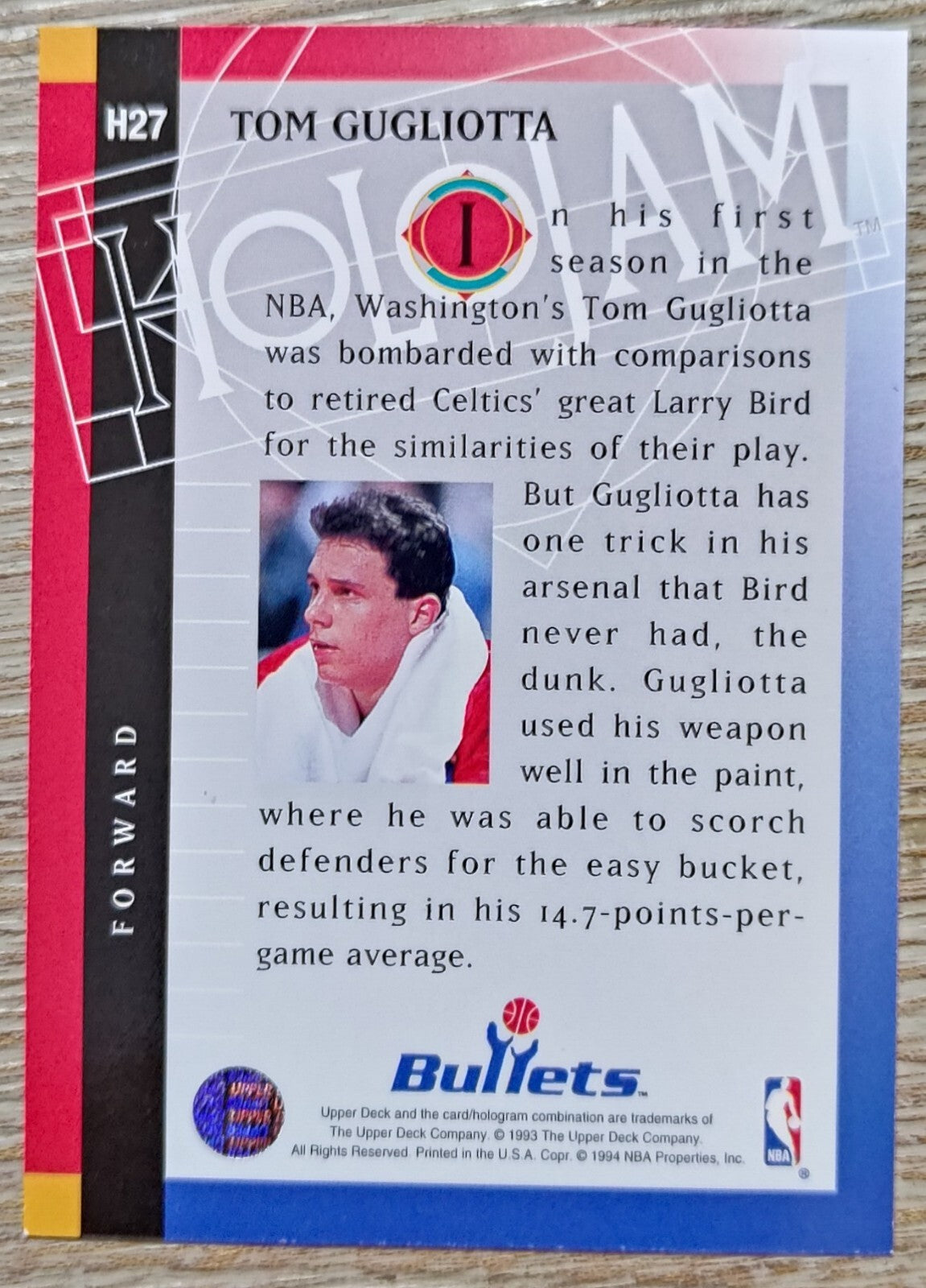 NBA - Tom Gugliotta Holojam H27 1993 Upper Deck NM/M Card. Card is in NM/M condition. Card will be sent...