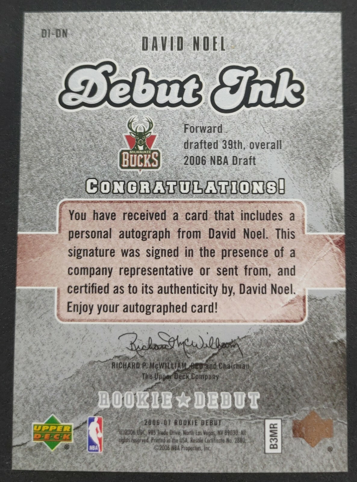 NBA - 2006-07 Upper Deck Rookie Debut - David Noel Autographed Card. Card is in NM condition, however, please use...