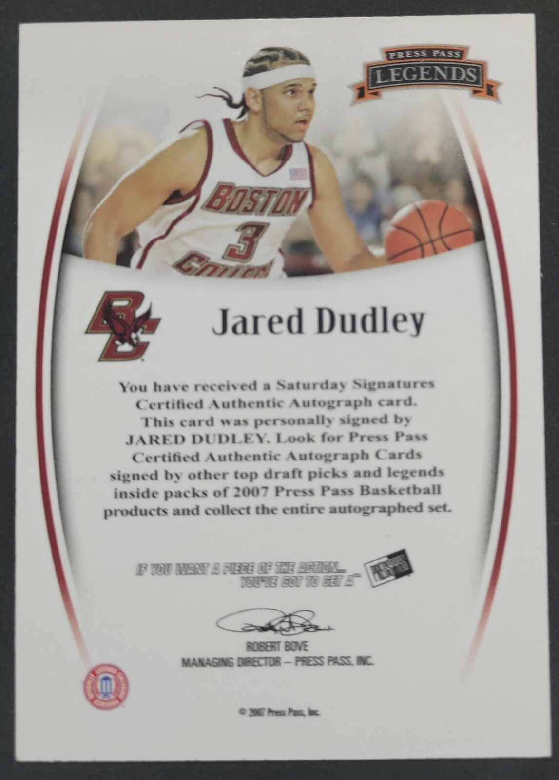 NBA - 2007 Press Pass Jared Dudley Red Ink Autographed Card. Card is in NM condition, however, please use photos...