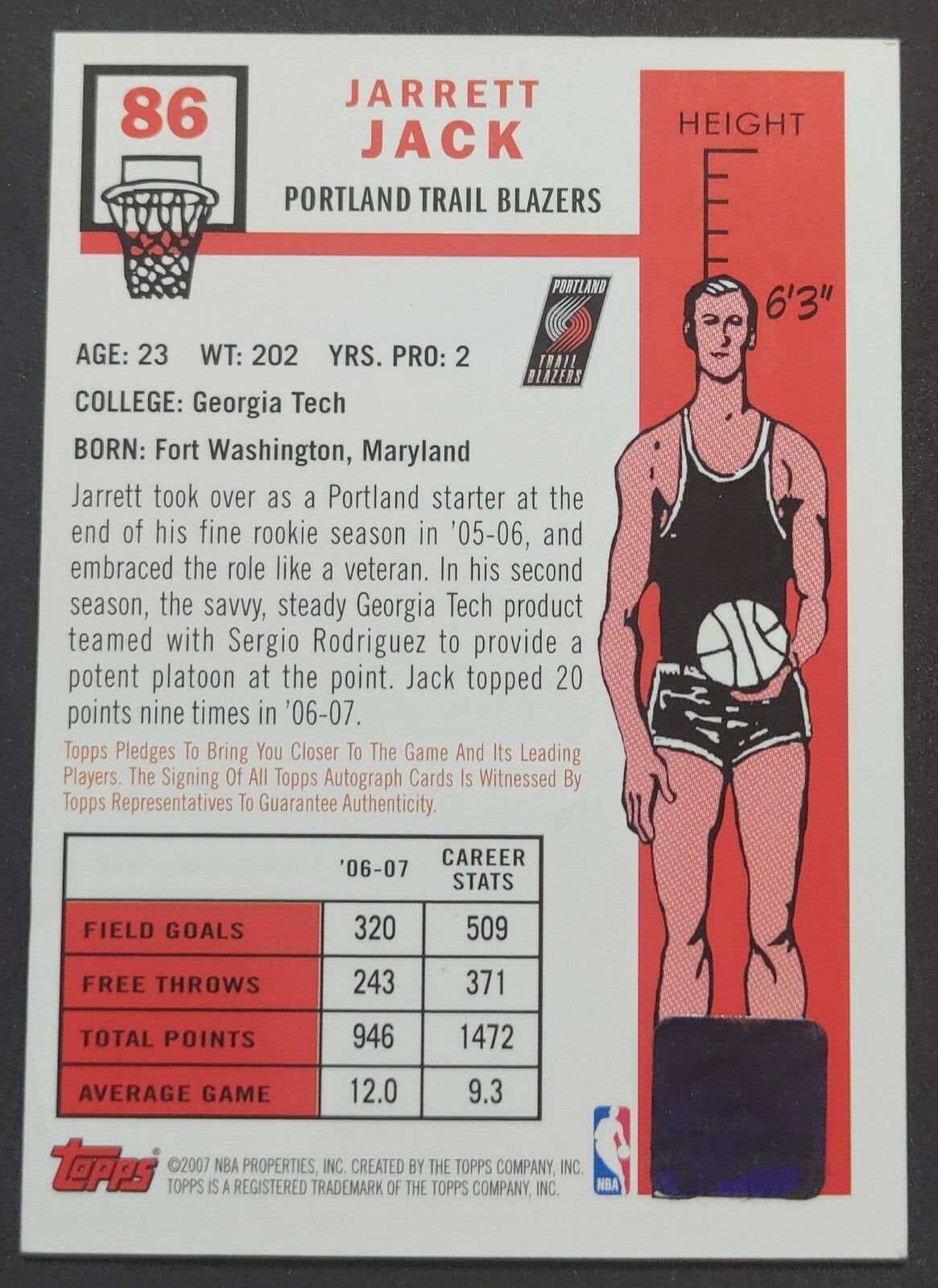 NBA - 2007 Topps 50th Anniversary Jarrett Jack Autographed Card. Card is in EXC condition, however, please use photos to...