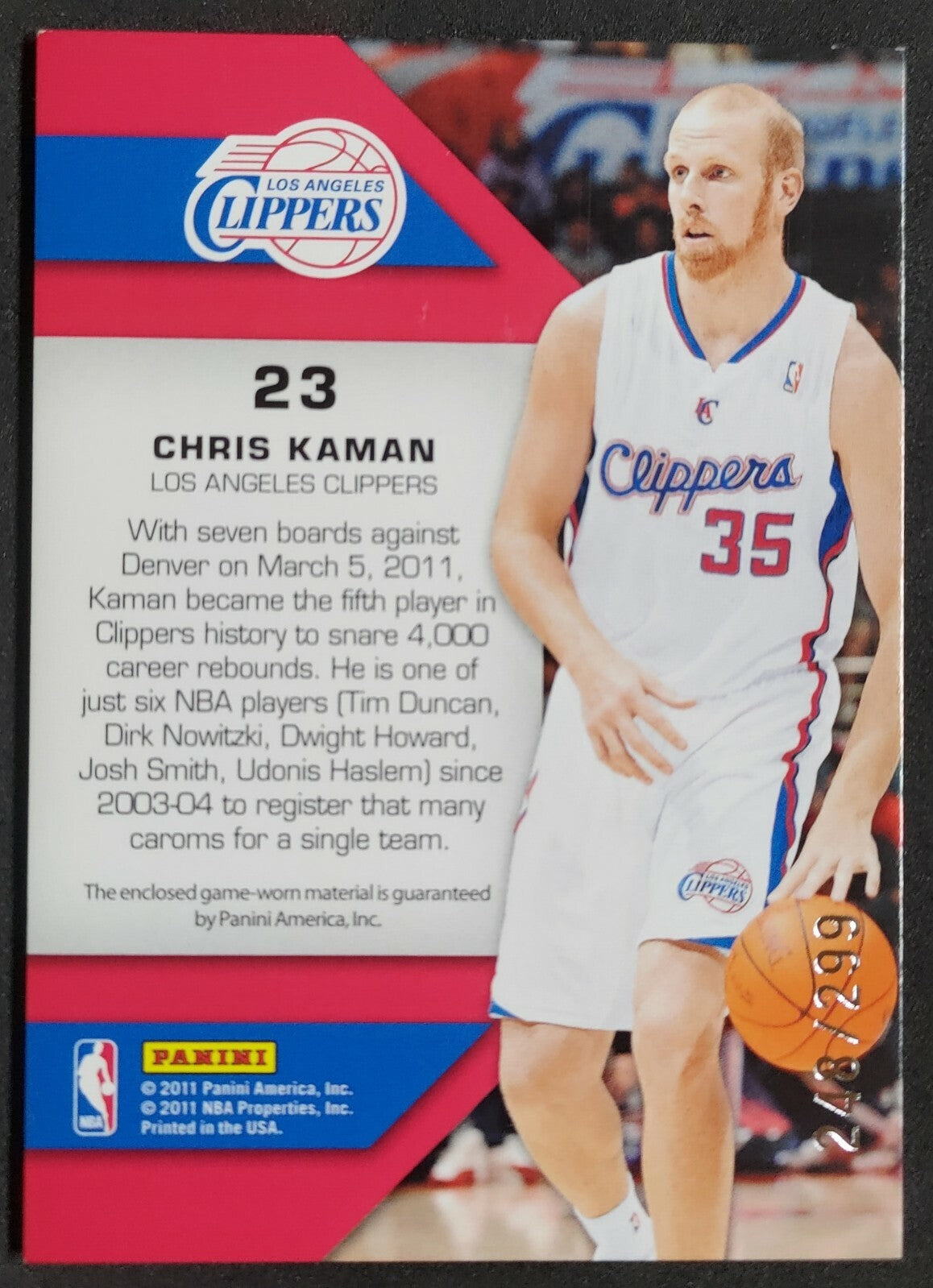 NBA - 2010-11 Panini Fabric Of The Game - Chris Kaman 248/299 Patch Card. Card is in NM condition, however,...