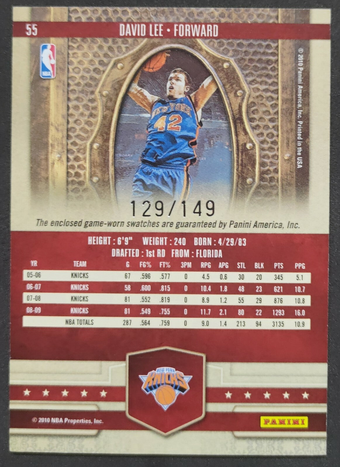 NBA - 2010 Panini Court Kings David Lee 129/149 Dual Patch Card. Card is in NM condition, however, please use...