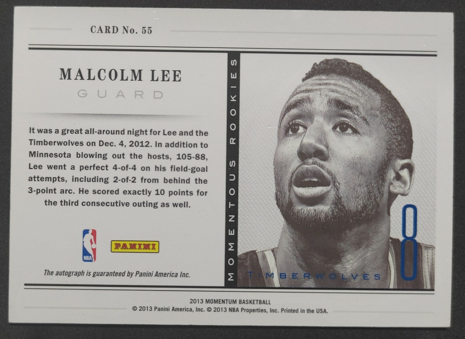 – Sold OutNBA - 2013 Panini Momentous Rookies - Malcolm Lee Autographed Card. Card is in NM condition, however, please use photos...