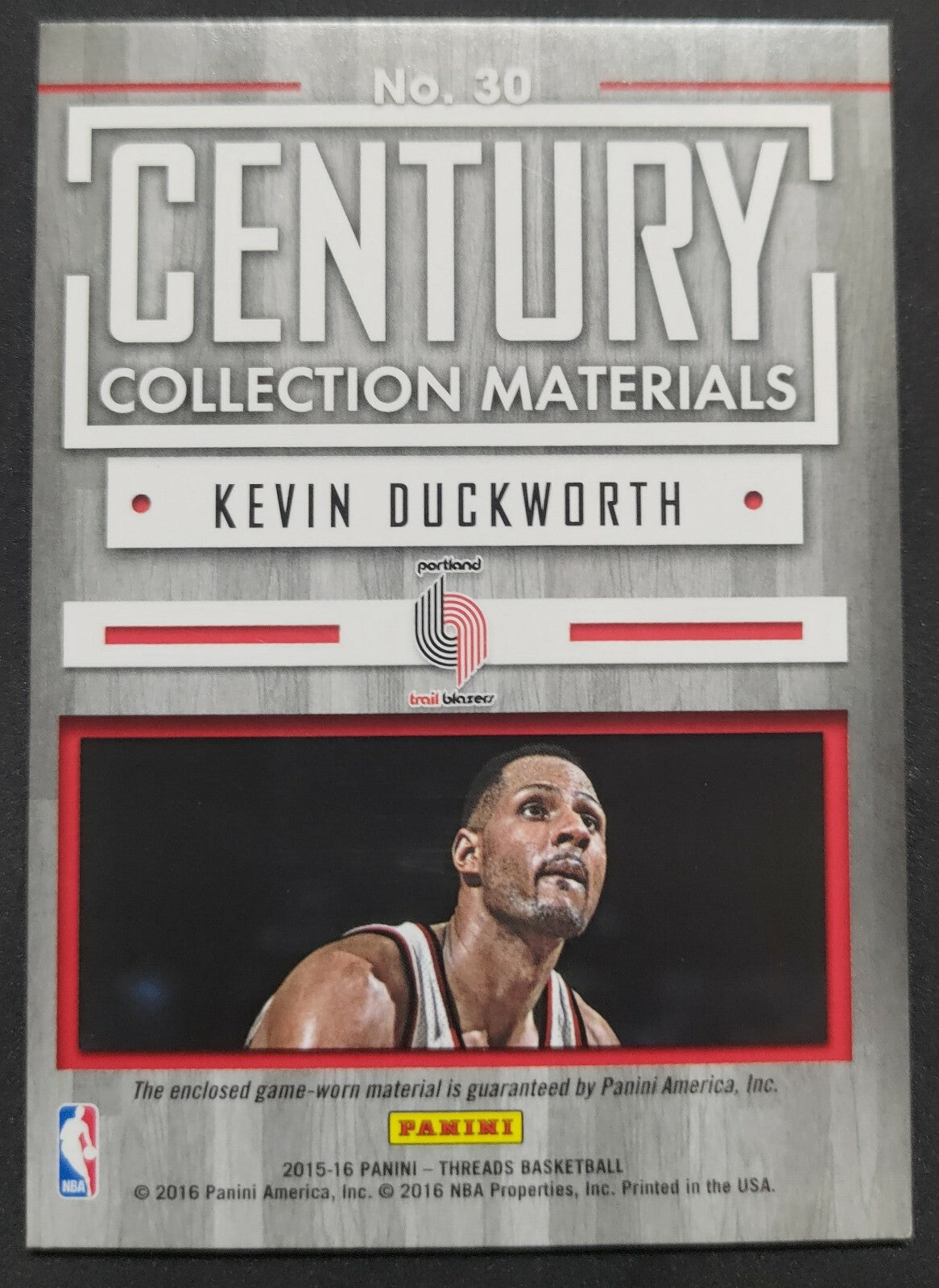 NBA - 2015-16 Panini Century Collection Materials - Kevin Duckworth 71/75 Patch. Card is in EXC condition, however, please use...