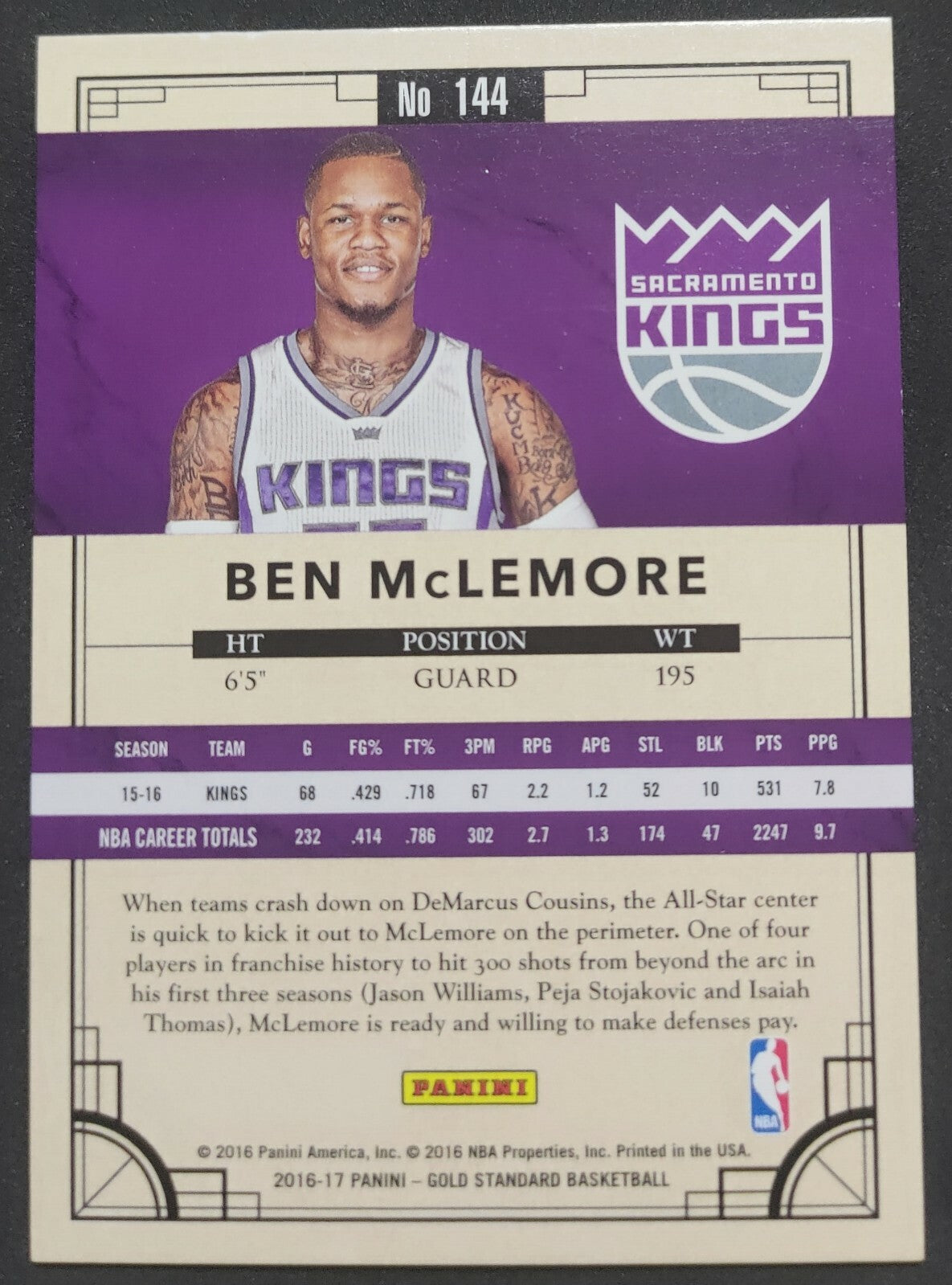 NBA - 2016 Panini Gold Standard - Ben McLemore 075/269 Card. Card is in NM condition, however, please use photos...