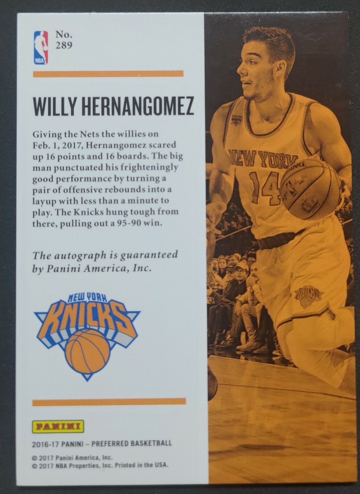 NBA - 2016-17 Panini Unparalleled - Willy Hernangomez 06/50 Autographed Card. Card is in NM condition, however, please use photos...