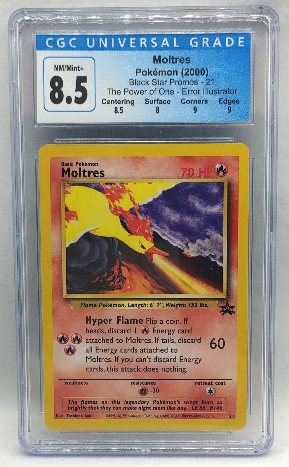 Pokemon - Moltres CGC 8.5 Black Star Movie Promo #21 Card. Card will be sent sleeved and boxed.