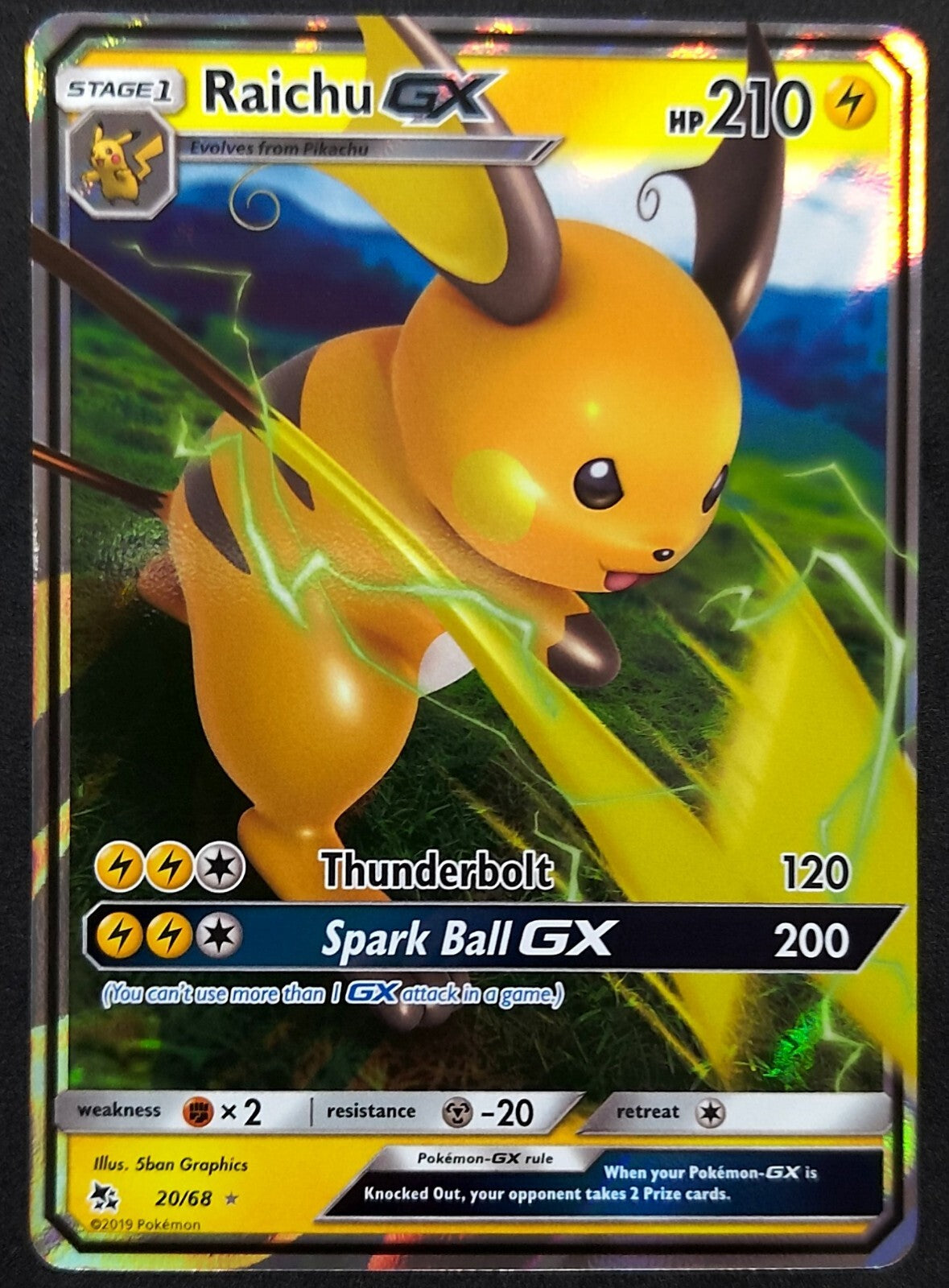Get your hands on the rare and highly sought-after Raichu GX card from the Hidden Fates set of the Pokémon...